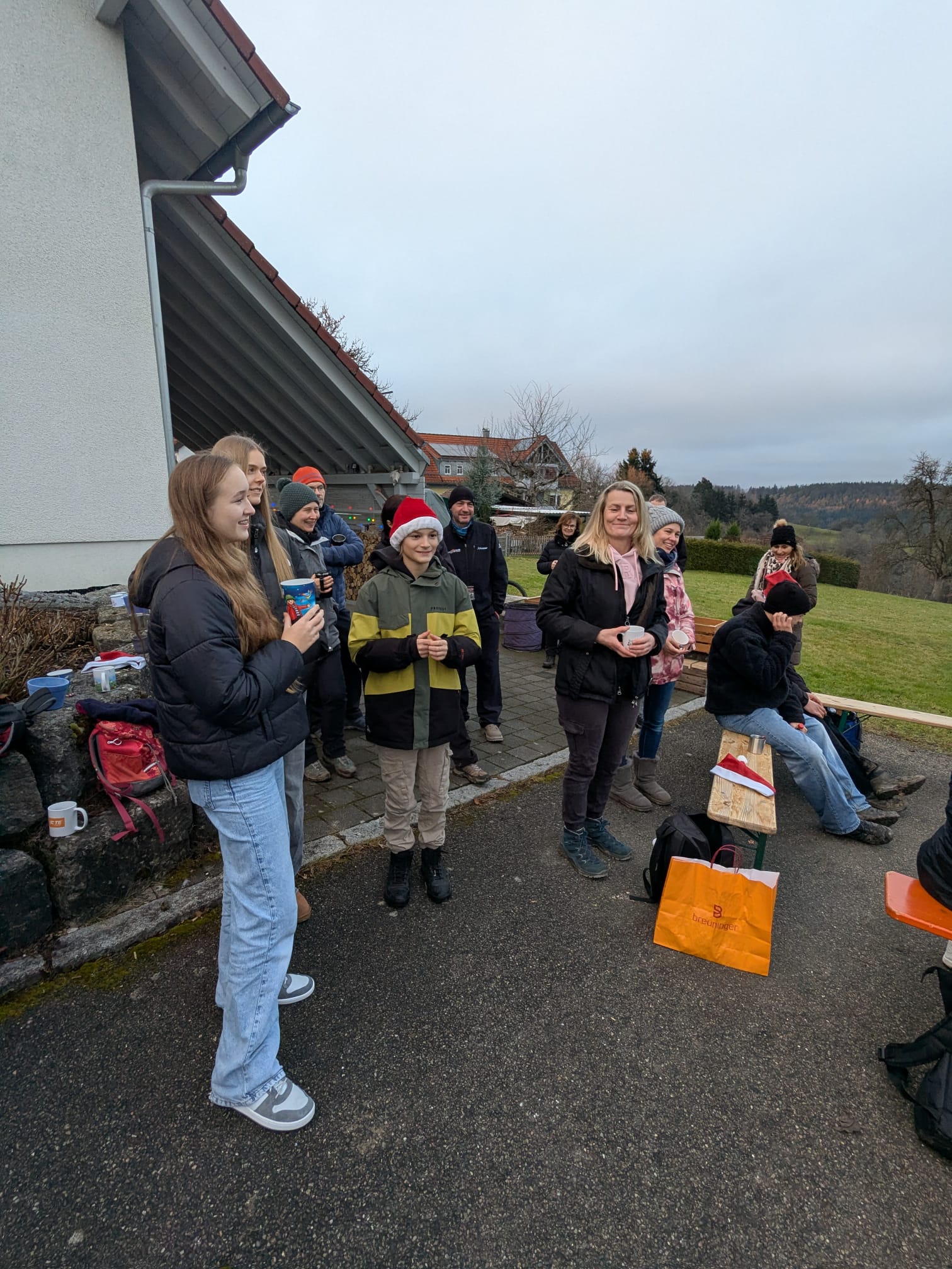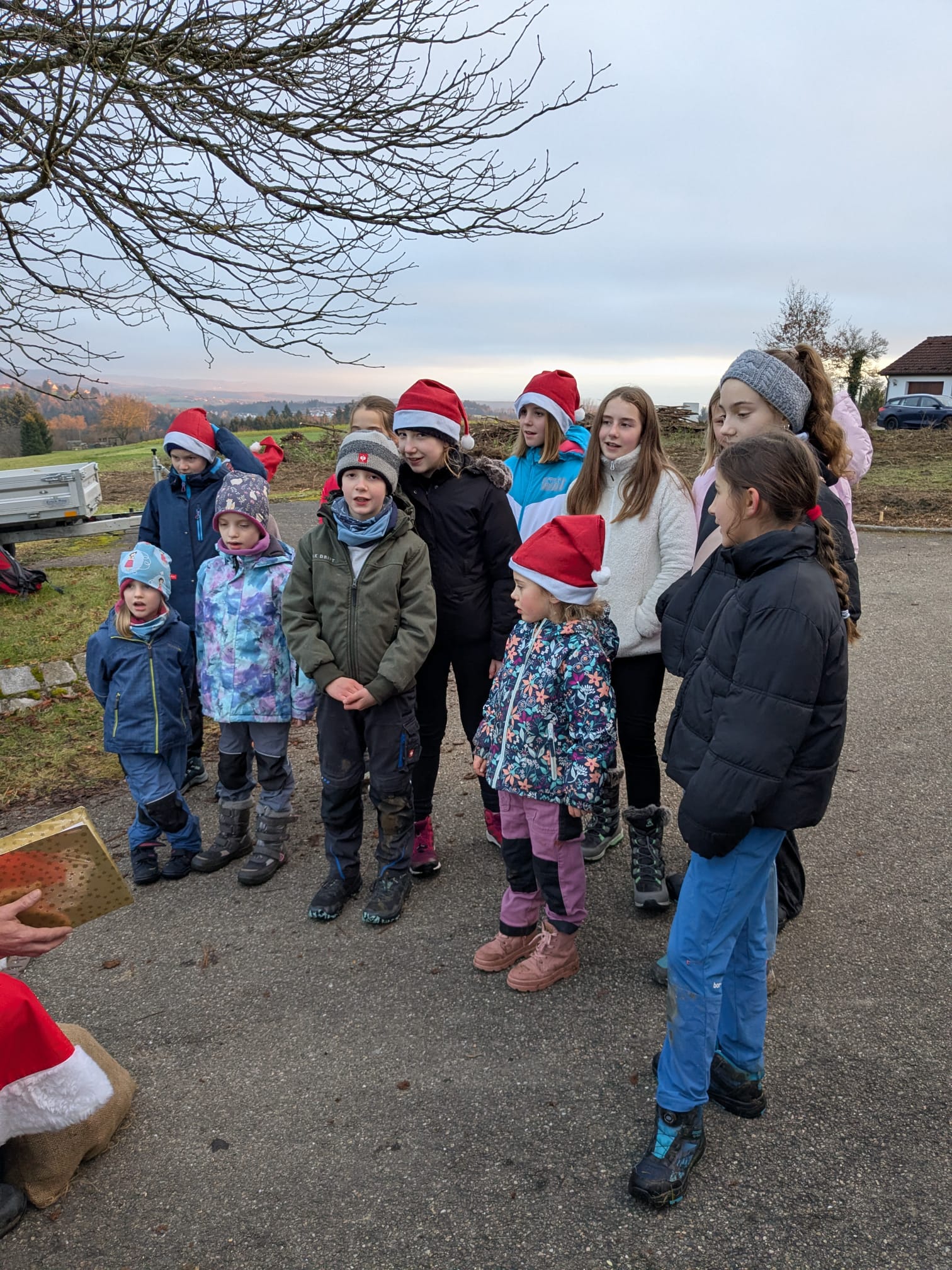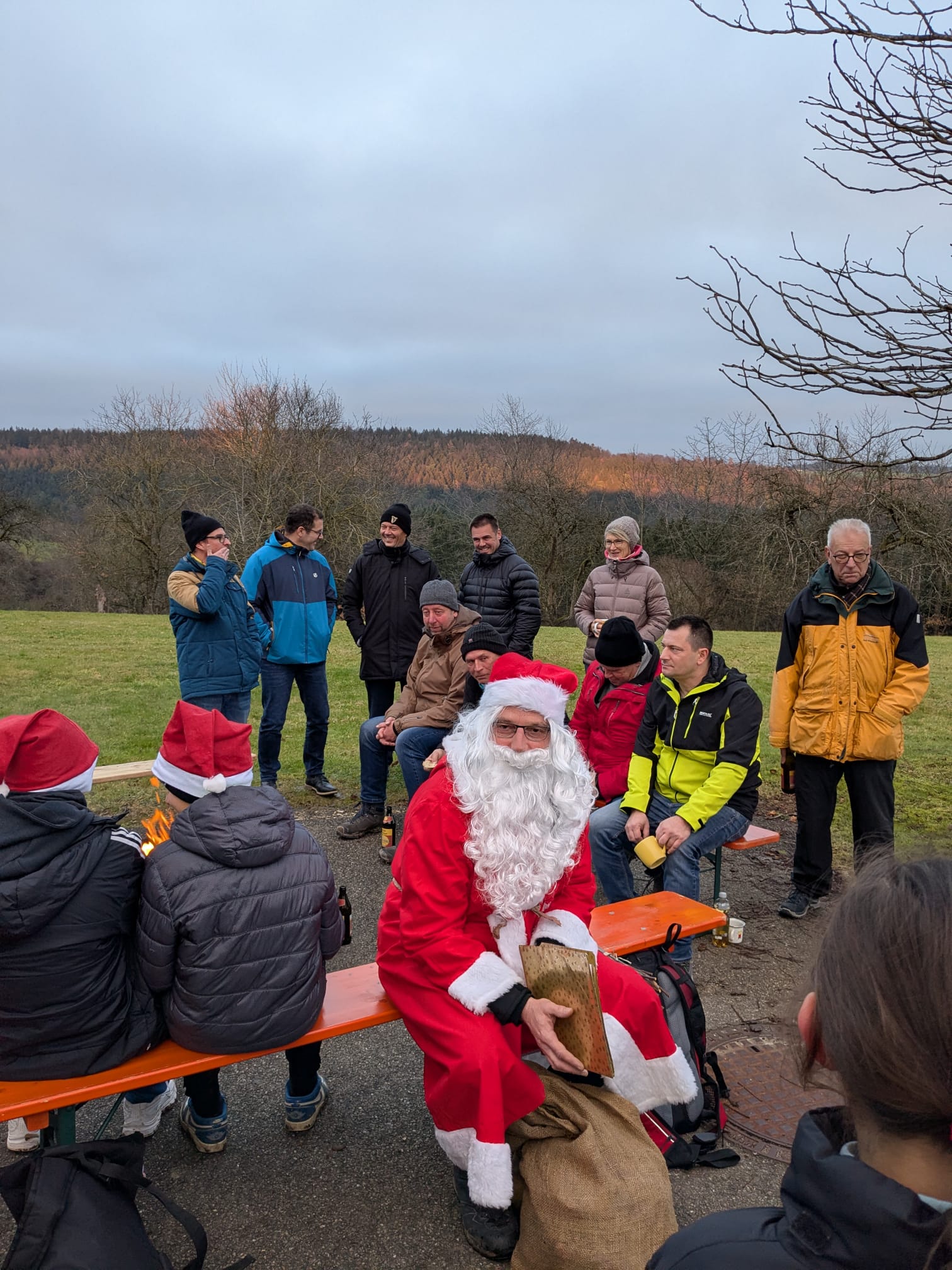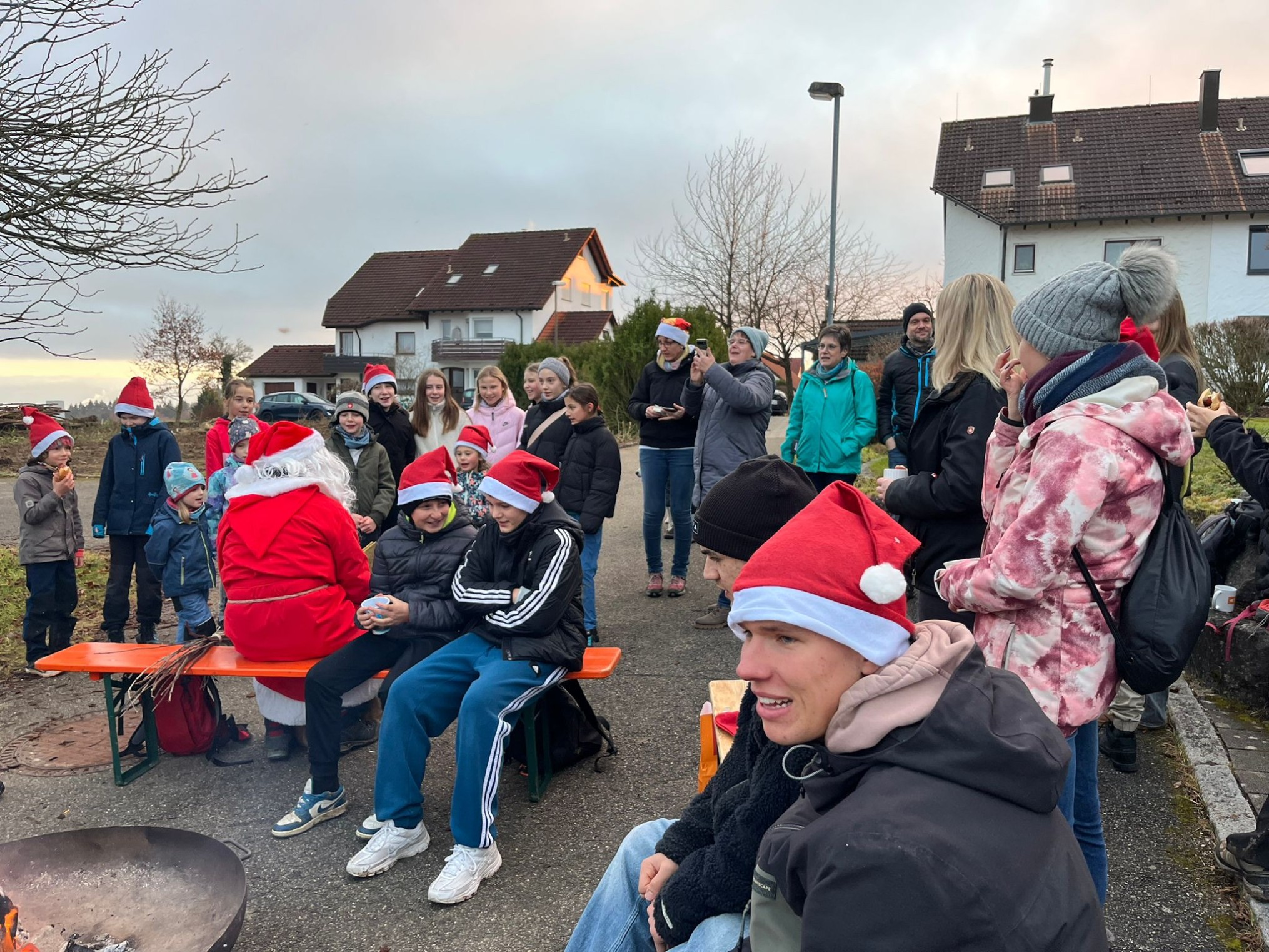 Albvereinsjugend in der Ortsmitte und wanderten eine schöne Runde vom Ort, vorbei am Herrenbachstausee, durch das Kloster bis hinauf zum Kugelberg. Dort angekommen, warteten ein herrlich knisterndes Lagerfeuer, leckere Wurst und heiße Getränke auf uns. Nachdem alle gestärkt und aufgewärmt waren, besuchte uns der Nikolaus. Er vergewisserte sich, dass alle Kinder brav gewesen waren, und verteilte anschließend seine Geschenke. Als Dankeschön sangen die Kinder ihm noch ein Lied, das ihm sehr gefallen hat. Wir freuen uns schon auf seinen Besuch im nächsten Jahr.
